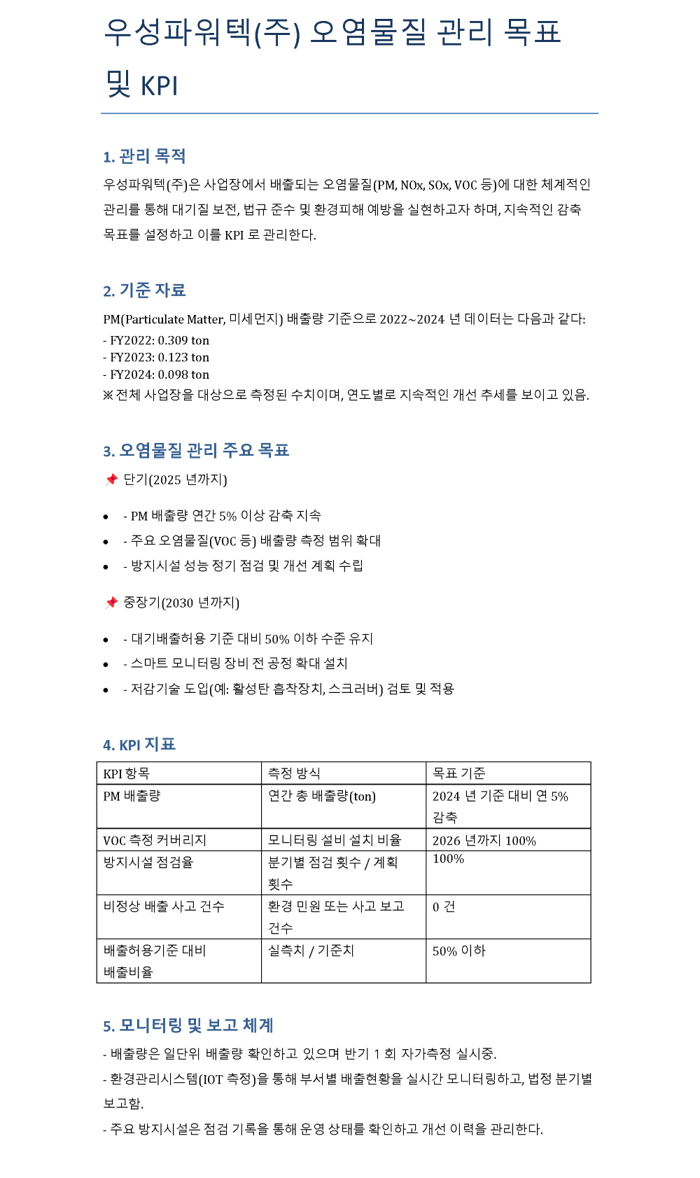 오염물질관리 KPI
