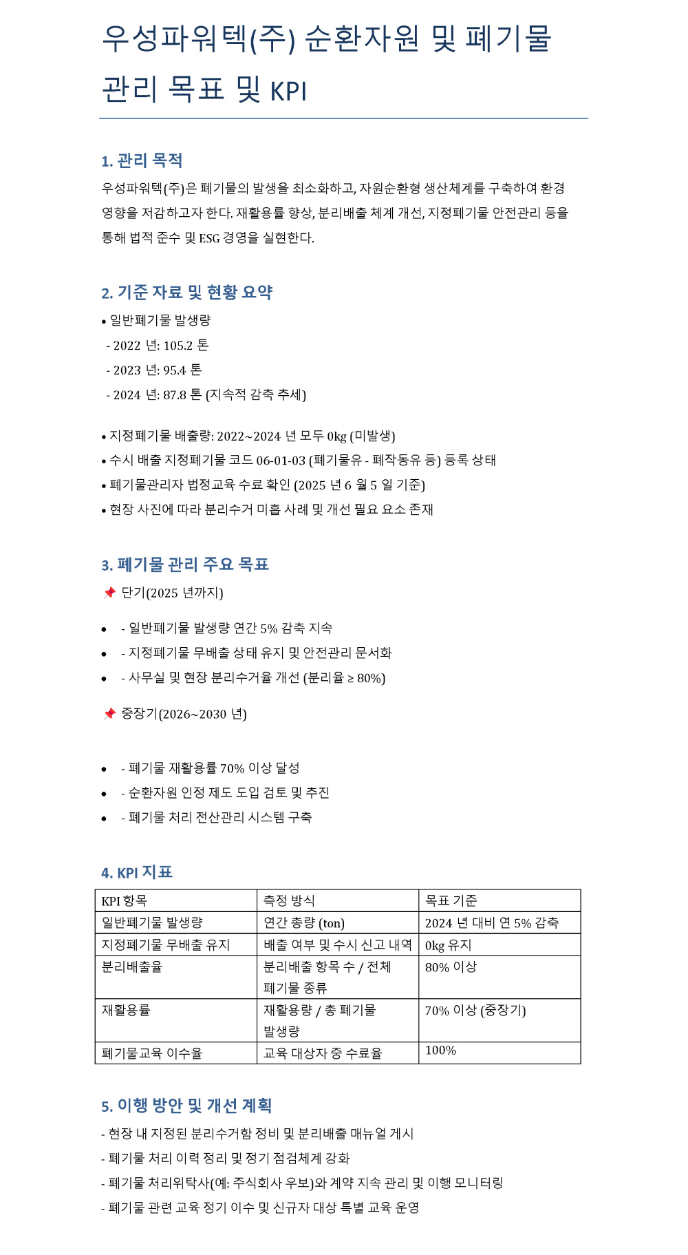 순환자원 및 폐기물관리 KPI